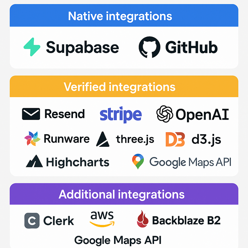 Business operations integrations with Salesforce, HubSpot, QuickBooks, and Shopify connect custom applications to existing business systems, enabling specialized interfaces while maintaining data integrity across enterprise tools. This approach lets companies build tailored experiences without migrating away from established platforms.